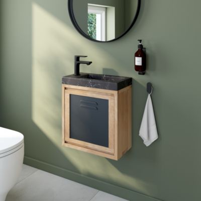 Ensemble meuble lave-mains à suspendre Indus chêne massif l.44 cm + plan vasque lave-mains effet marbre noir