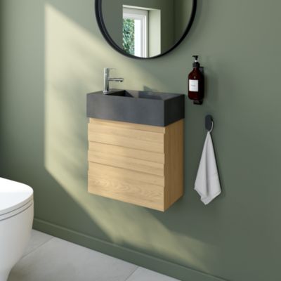 Ensemble meuble lave-mains Etty effet chêne l.44 cm + plan vasque lave-mains béton gris