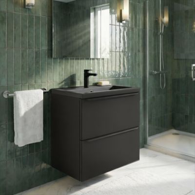 Meuble vasque suspendu faible profondeur noir mat l.60 cm Imandra + plan vasque noir céramique Nira, GoodHome