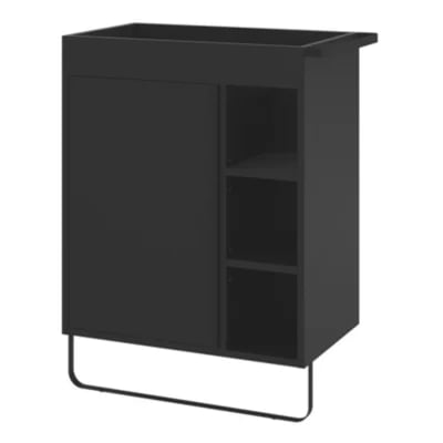 Meuble sous vasque faible profondeur à poser l.65 x H.82 x P.36 cm, noir, avec porte-serviettes, GoodHome Maza