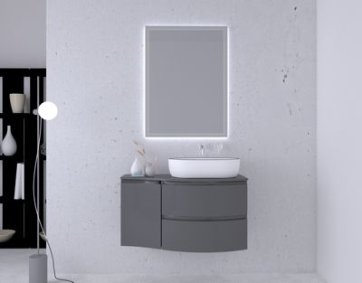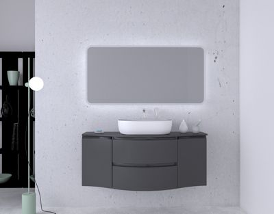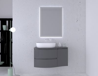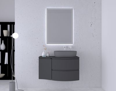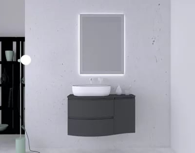 Ensemble Vague L.104 cm meuble sous vasque à suspendre graphite mat + plan de toilette + complément gauche