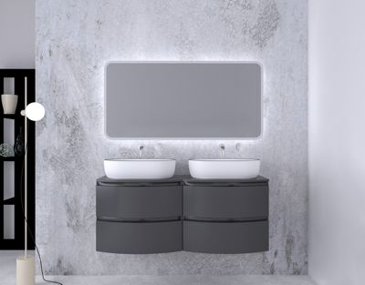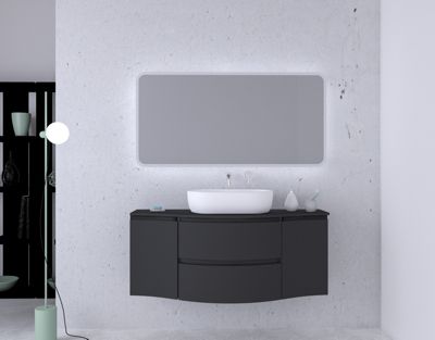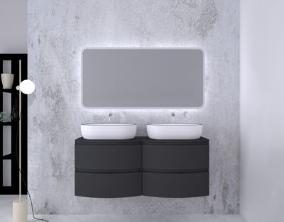 Ensemble salle de bains l.138 cm meuble sous vasque + plan de toilette double graphite mat Vague
