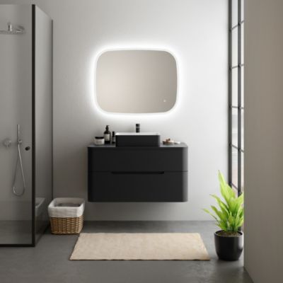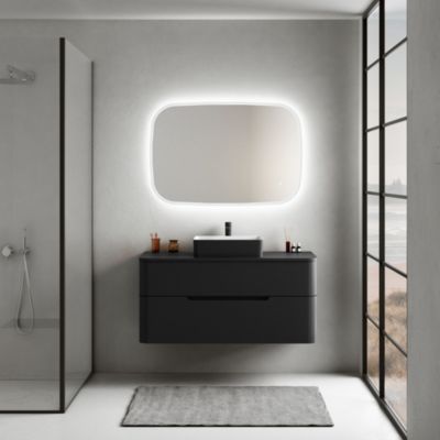 Ensemble Vague L.104 cm meuble sous vasque noir mat à suspendre + plan de toilette + complément gauche