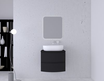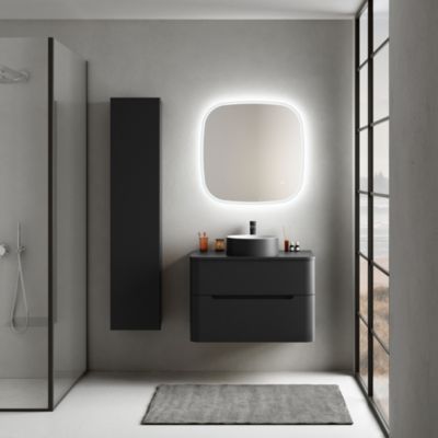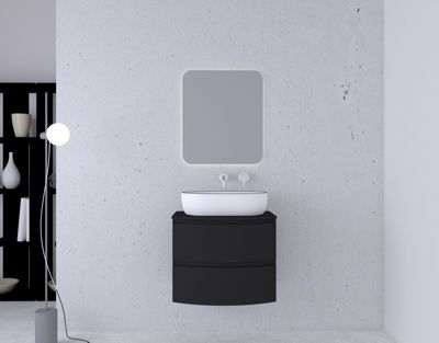 Ensemble Vague L.70 cm meuble sous vasque noir mat à suspendre + plan de toilette noir mat