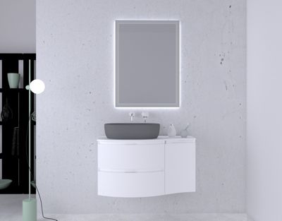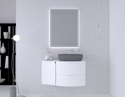Ensemble Vague L.104 cm meuble sous vasque à suspendre blanc brillant + plan de toilette + complément droit