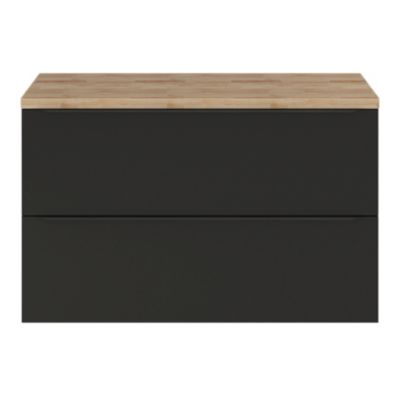 Meuble vasque suspendu noir mat l.100 cm Imandra + plan de toilette effet chêne, GoodHome