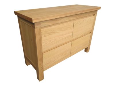 Meuble sous vasque à poser 4 tiroirs 1 niche placage chêne l.120 cm + plan de toilette placage chêne, GoodHome Perma