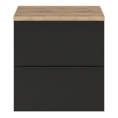 Meuble vasque suspendu noir mat l.60 cm Imandra + plan de toilette effet chêne, GoodHome