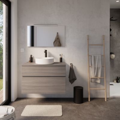 Meuble sous vasque 1 tiroir Avela 80 cm à suspendre + plan de toilette 80 cm GoodHome