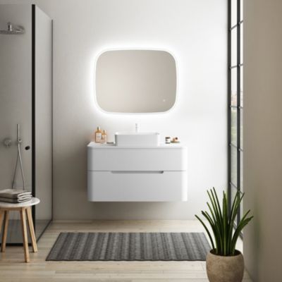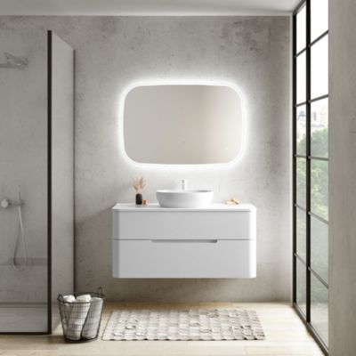 Ensemble Vague L.104 cm meuble sous vasque à suspendre blanc brillant + plan de toilette + complément gauche