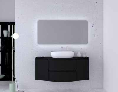 Ensemble Vague L.138 cm meuble sous vasque à suspendre noir mat + plan de toilette central
