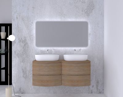 Ensemble salle de bains l.138 cm meuble sous vasque effet bois + plan de toilette double effet bois Vague