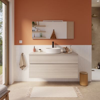 Meuble vasque suspendu effet chêne l.120 cm + plan de toilette, Calao