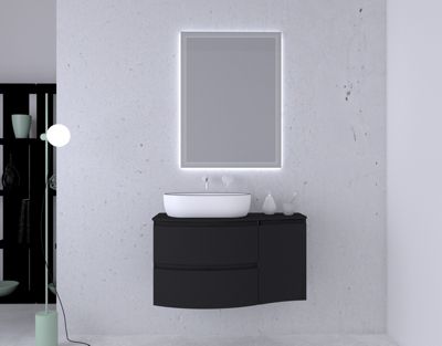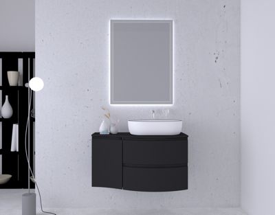 Ensemble Vague L.104 cm meuble sous vasque noir mat à suspendre + plan de toilette + complément droit