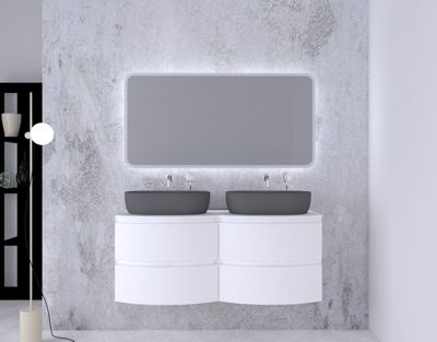 Ensemble Vague L.138 cm meuble sous vasque à suspendre blanc mat + plan de toilette double blanc mat