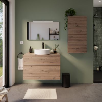 Meuble sous vasque à poser 2 tiroirs 1 niche placage chêne l.80 cm + plan de toilette placage chêne, GoodHome Perma