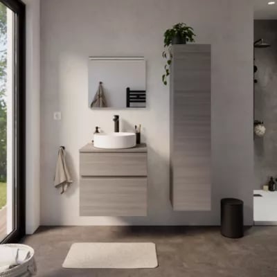 Meuble vasque suspendu effet chêne l.60 cm + plan de toilette, Calao