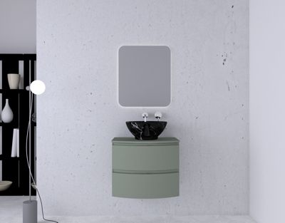 Ensemble Vague L.70 cm meuble sous vasque kaki mat à suspendre + plan de toilette kaki mat