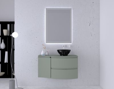 Ensemble Vague L.104 cm meuble sous vasque à suspendre kaki mat + plan de toilette + complément gauche