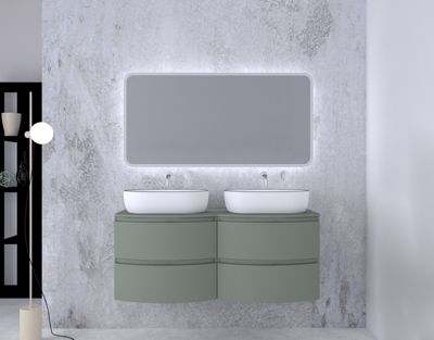 Ensemble Vague L.138 cm meuble sous vasque à suspendre kaki mat + plan de toilette double