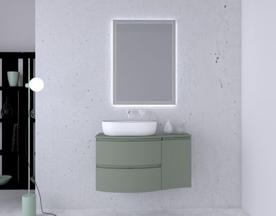 Ensemble Vague L.104 cm meuble sous vasque à suspendre kaki mat + plan de toilette + complément droit