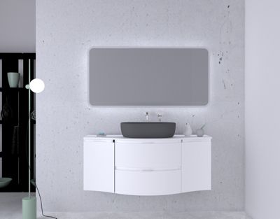 Ensemble Vague L.138 cm meuble sous vasque à suspendre blanc mat + plan de toilette blanc mat central