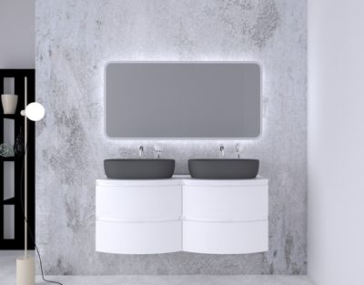 Ensemble salle de bains l.138 cm meuble sous vasque + plan de toilette double blanc brillant Vague