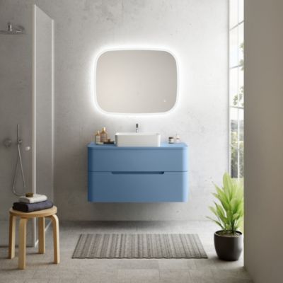 Meuble sous vasque à poser 2 tiroirs 1 niche bleu mat l.80 cm + plan de toilette, GoodHome Perma
