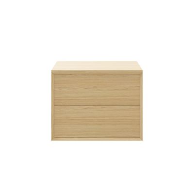 Meuble sous vasque à poser 2 tiroirs 1 niche placage chêne l.60 cm + plan de toilette placage chêne, GoodHome Perma