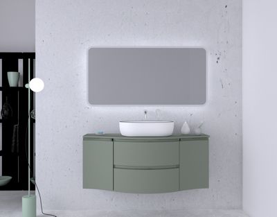 Ensemble Vague L.138 cm meuble sous vasque à suspendre kaki mat + plan de toilette central