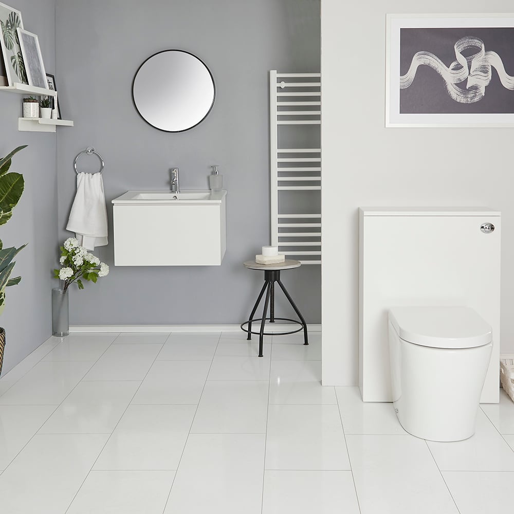 Meuble lavabo suspendu et meuble WC avec cuvette à poser – 60 cm – Blanc - Newington