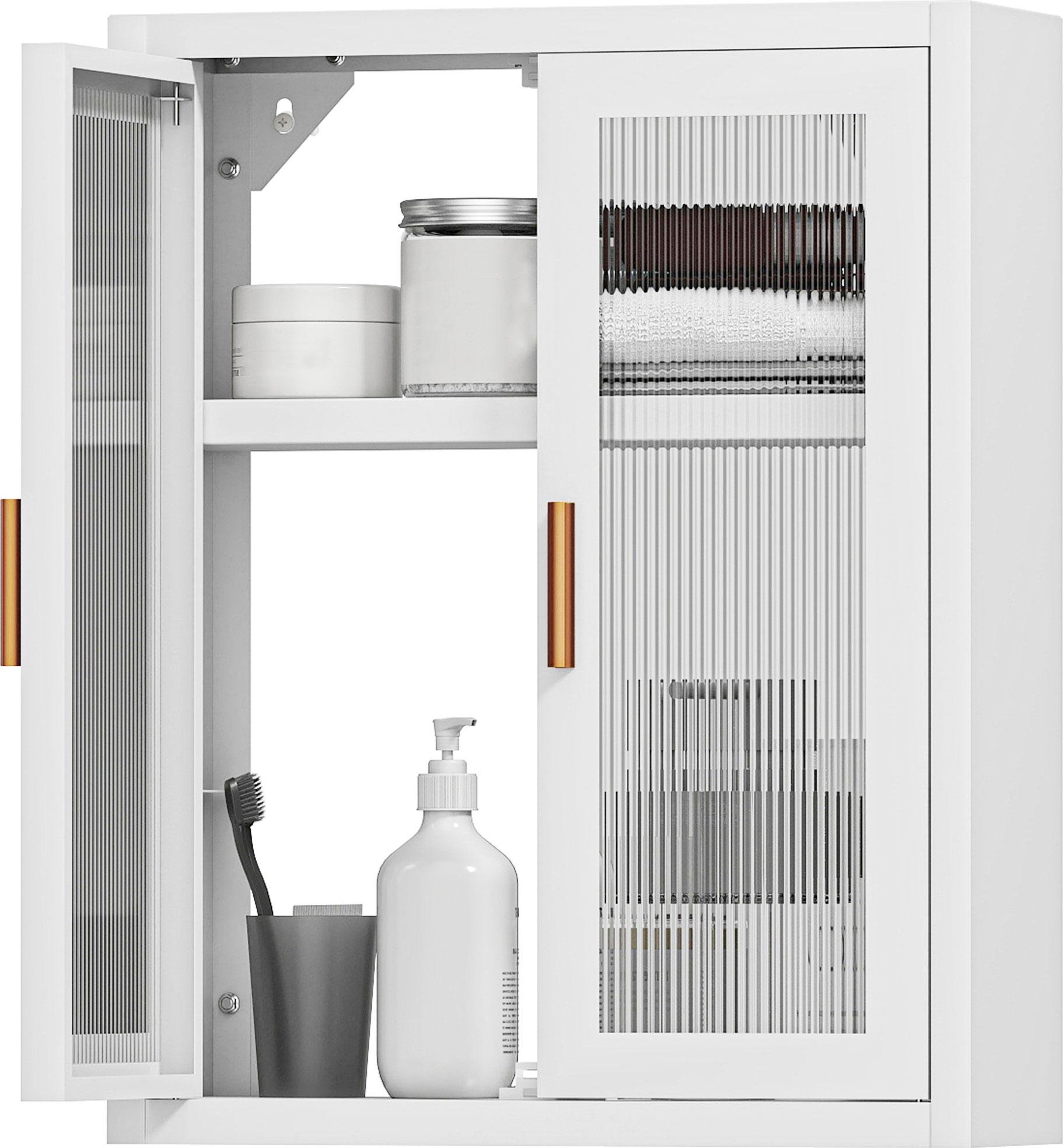 HOMCOM Armoire murale de salle de bain 2 niveaux, meuble de rangement suspendu pour salle de bains avec 2 portes cannelées en acrylique et étagère réglable, meuble WC suspendu, 40 x 14 x 50 cm, blanc