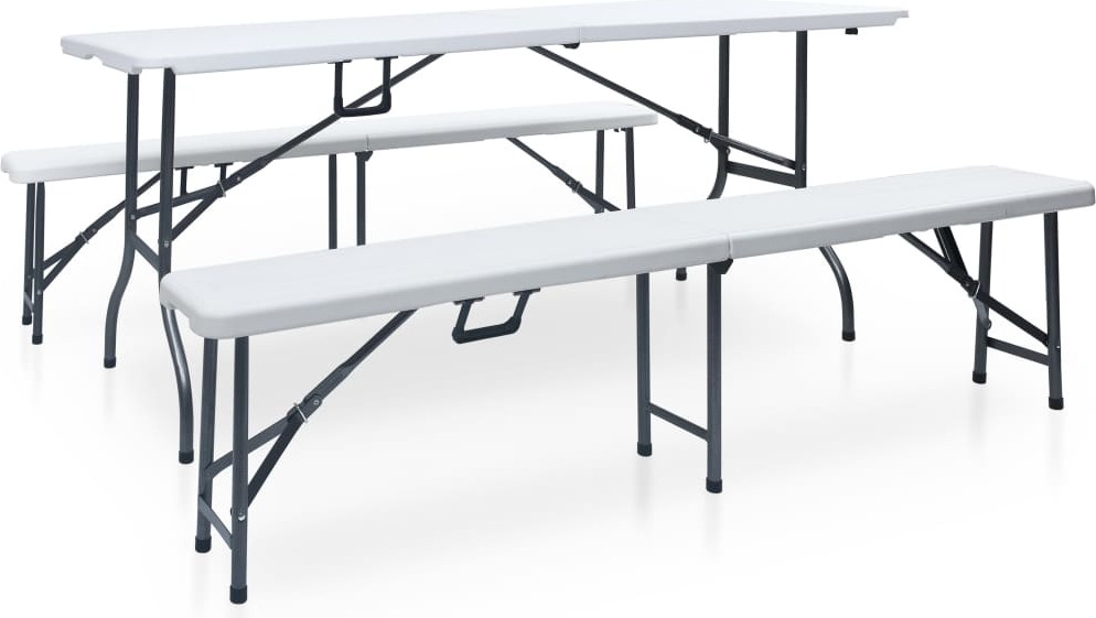 Meuble de jardin simple Ensemble de meubles de balcon Table de jardin pliante avec 2 bancs 180 cm acier et PEHD blanc - Ensemble de meubles de jardin FR4216602 1parcel