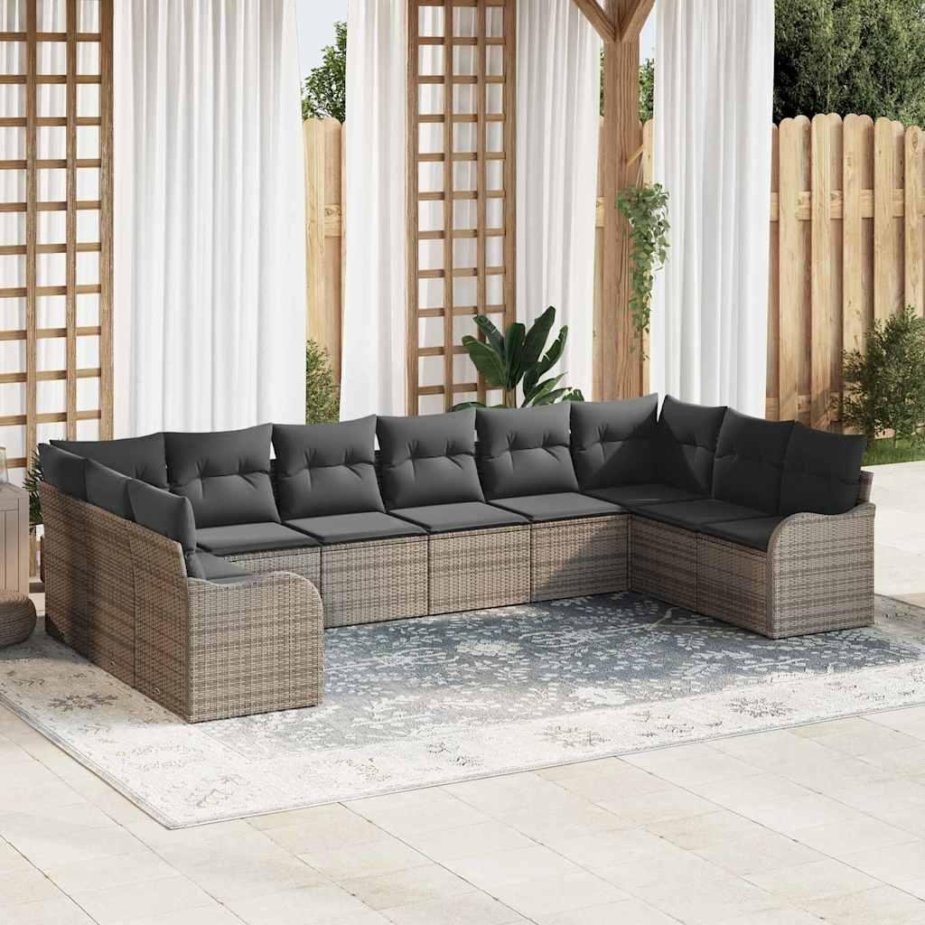 Meuble de jardin simple Ensemble de meubles de balcon Ensemble de canapés de jardin avec coussins 10 pcs Gris Poly rotin - Ensemble de meubles de jardin FR9474027 3parcel