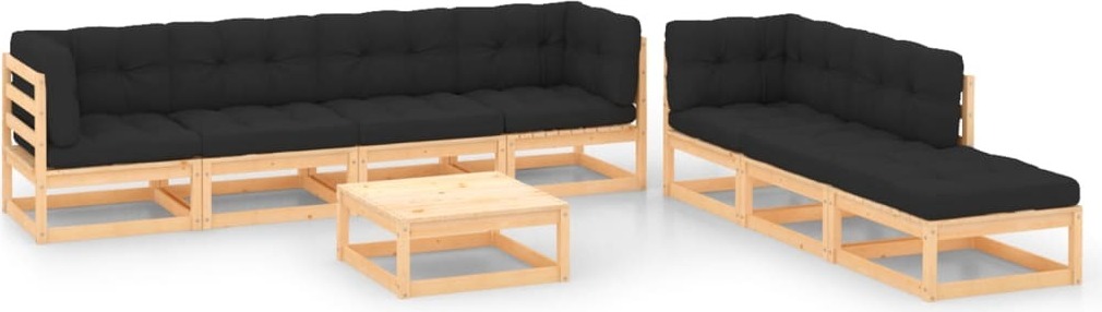 Meuble de jardin simple Ensemble de meubles de balcon Ensemble de 8 pièces de salon de jardin avec coussins Pin massif - Ensemble de meubles de jardin FR1626642 4parcel