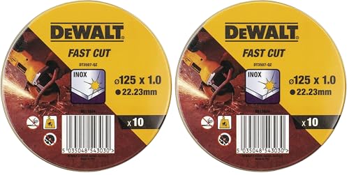 DEWALT Coffret de 10 Disques Pour Meuleuse - Dimensions 125 mm x 1 mm - Matériau de Disque Robuste en Étain - Pour Acier Inoxydable - Convient pour une Utilisation Professionnelle, DT3507-QZ