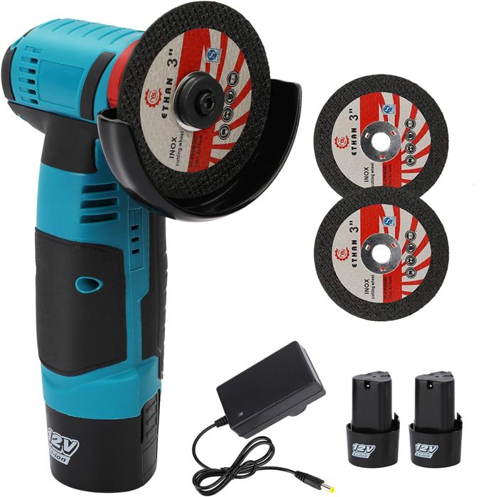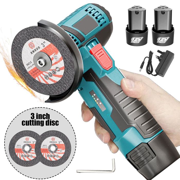Meuleuse dangle sans fil 12V 76mm 19 500 tr/min - kit 2 batteries 2 disques pour couper polir poncer
