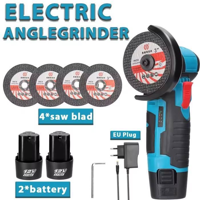 Meuleuse d'angle électrique sans balais 12V, meuleuse électrique, Machine à polir Rechargeable, outils électriques de coupe, batterie 2000MAH