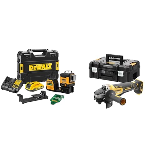 DeWalt - Laser Multilignes 3x360° 12V Li-Ion 2Ah - Niveau Laser Autonivelant 4° sans Fil avec Faisceaux Verts & Meuleuse Brushless XR 18V 5Ah Li-Ion - Lame Ø125mm - Vitesse à Vide 9000tr/min - 1000W