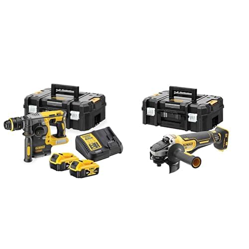 DEWALT - Perforateur SDS-PLUS XR 18V 5 Ah - DCH273P2T-QW - Perforateur sans Fil avec Coffret TSTAK & Meuleuse Brushless XR 18V 5Ah Li-Ion - DCG406NT-XJ - Lame Ø125mm - Vitesse à Vide 9000tr/min -1000W