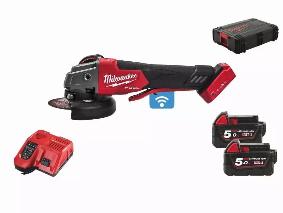 Meuleuse d'angles MILWAUKEE M18 Fuel - Ø 125 mm - 2 batteries 5.0 Ah, chargeur, coffret - 4933478435