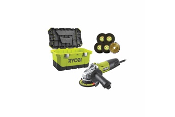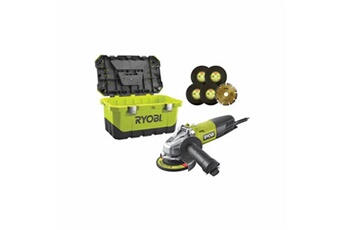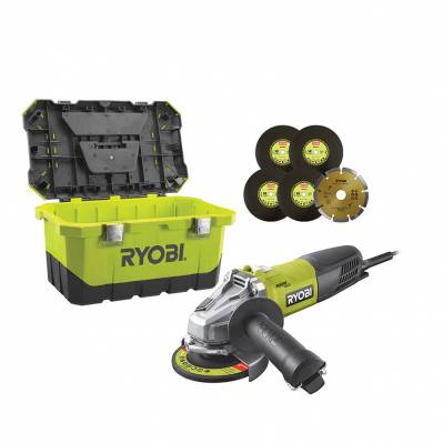RYOBI Meuleuse d'angle - 125 mm - 800 W - Avec boîte a outils et 6 disques