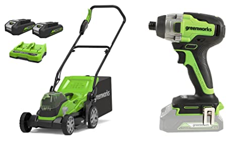 Greenworks Tondeuse à Batterie G24X2LM36K2x Sac collecteur Réglage Central de la Hauteur de Coupe INCL. 2X 2Ah Batterie et Chargeur + Greenworks Meuleuse d'angle sans Fil GD24SAG