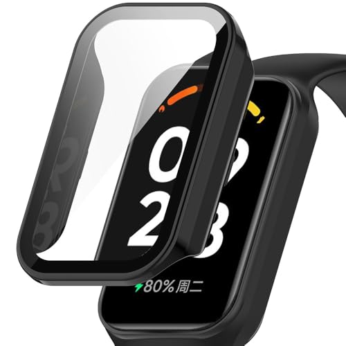 Coque pour Xiaomi Smart Band 8 Active/Mi Band 8 Active, Dur PC Housse Case mit Glas de Protection D'écran, Anti-Rayures, Anti-poussière, Cover Étui pour Redmi Band 2