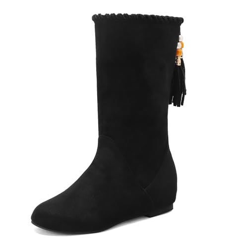 Bviennic Bottes mi-Mollet Femme Plates Confort Bout Rond a Enfiler Daily 2879 Noir Taille 45 Eu/47Cn