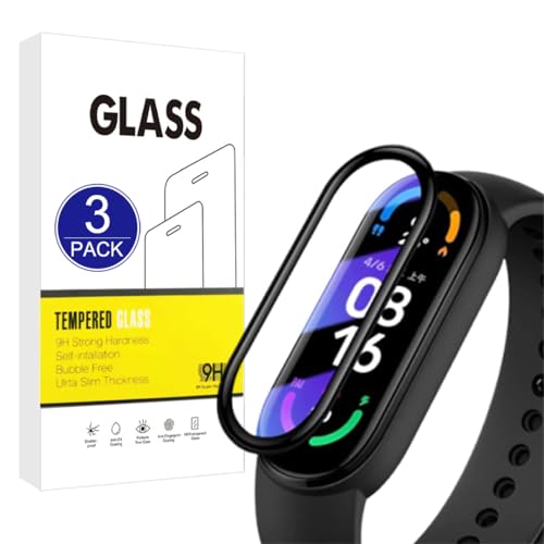 REY [Lot de 2] Verre Trempé 3D pour XIAOMI MI Smart Band 5- XIAOMI MI Smart Band 6, Noir, Protecteur d'écran qualité supérieure, Protection Complète, 3D, 4D, 5D