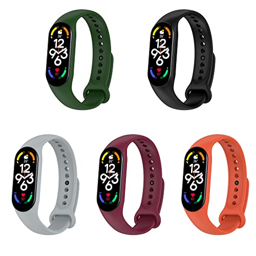KUTEWEU Bracelet Compatible avec Xiaomi Band 7 Smart Band, 5 Pièces Bracelet de montre en Silicone souple réglable de remplacement conçu pour Xiaomi Mi Band7 Smart Sport Watch (5 Pièces-b)