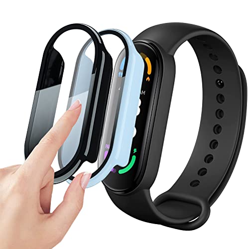 Akancy Coque Rigide Compatible avec mi smart band 6/5/4/3 avec Film de Protection, Dureté 9H Hart Coque PC Verre Trempé Mince pour Smart mi smart band 6/5/4/3, noir