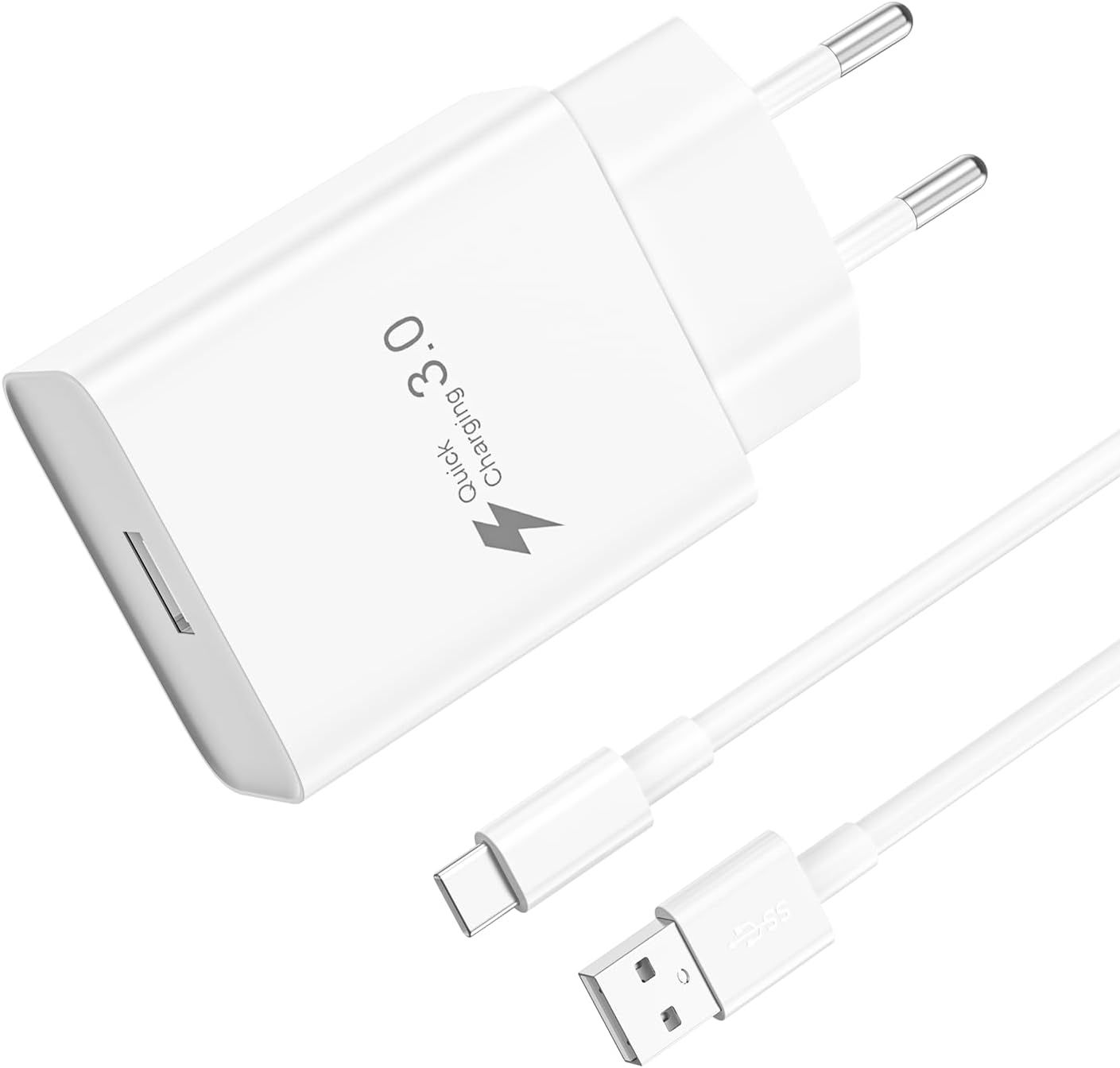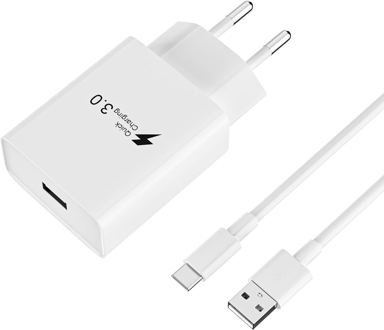 Chargeur Rapide 18 W pour Xiaomi Redmi 14C, 12, Note 12, 11, 10, 9, 8,11T, 9T, 8T, Mi12, Mi11, Mi10, Mi9, MiA2, Redmi Pro5G, Poco X3 Pro NFC, Xiaomi Type C, Chargeur Rapide avec câble de 2 m (Blanc)