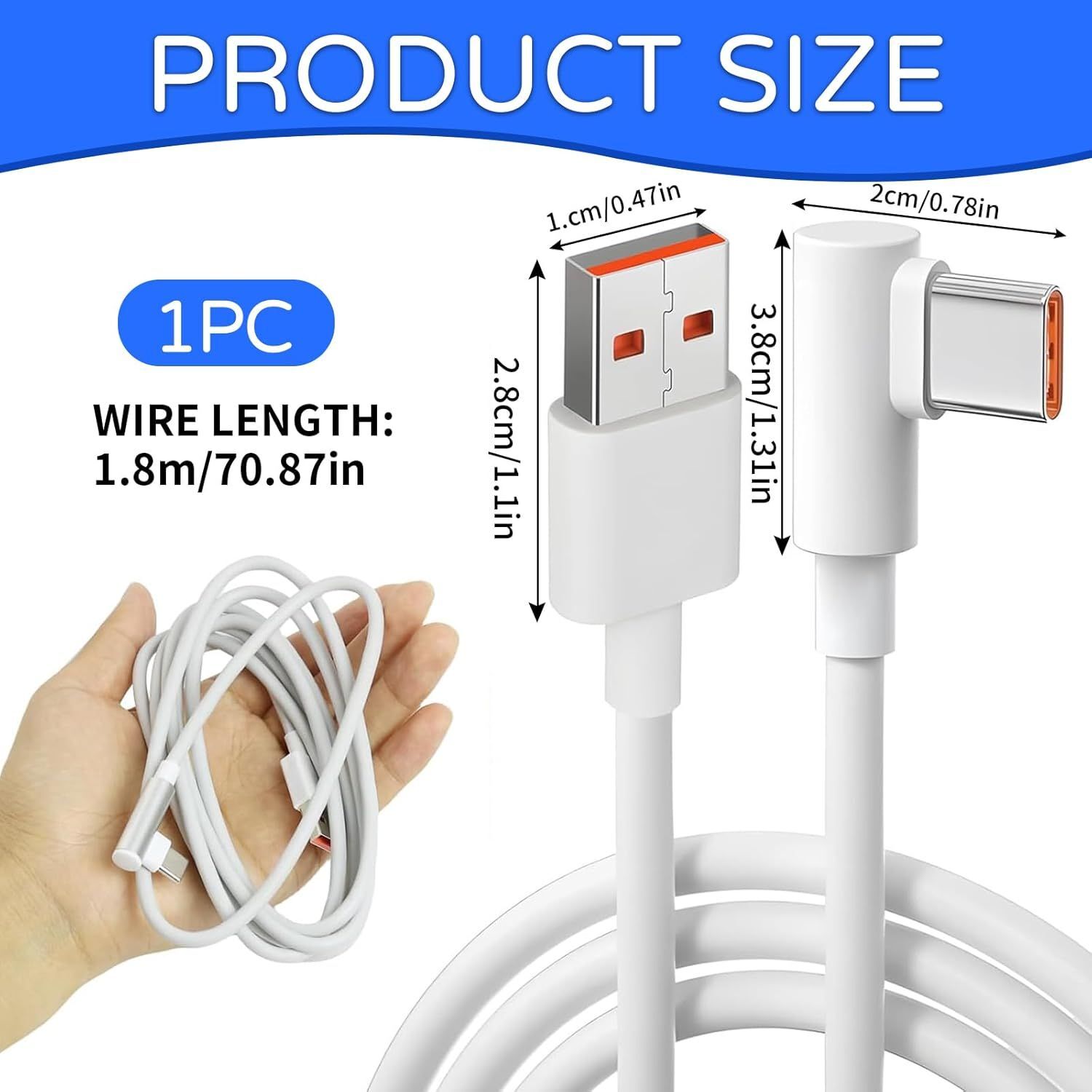Câble Pour Xiaomi 120w | Câble Usb C Coudé | Charge Rapide 6a Connecteur 90 Degrés | Chargeur Câble Compatible Avec Xiaomi Redmi Note 14 14 Pro 13 12x 12t 11t Pro 11 Lite 10t 11 Mi11 Poco Turbo | 1,8